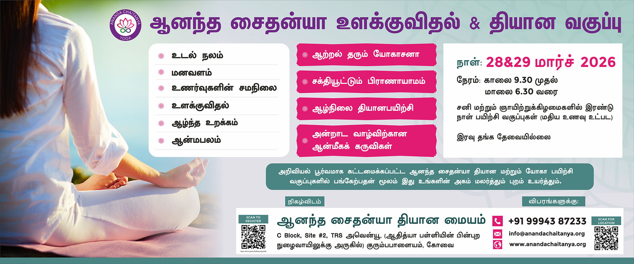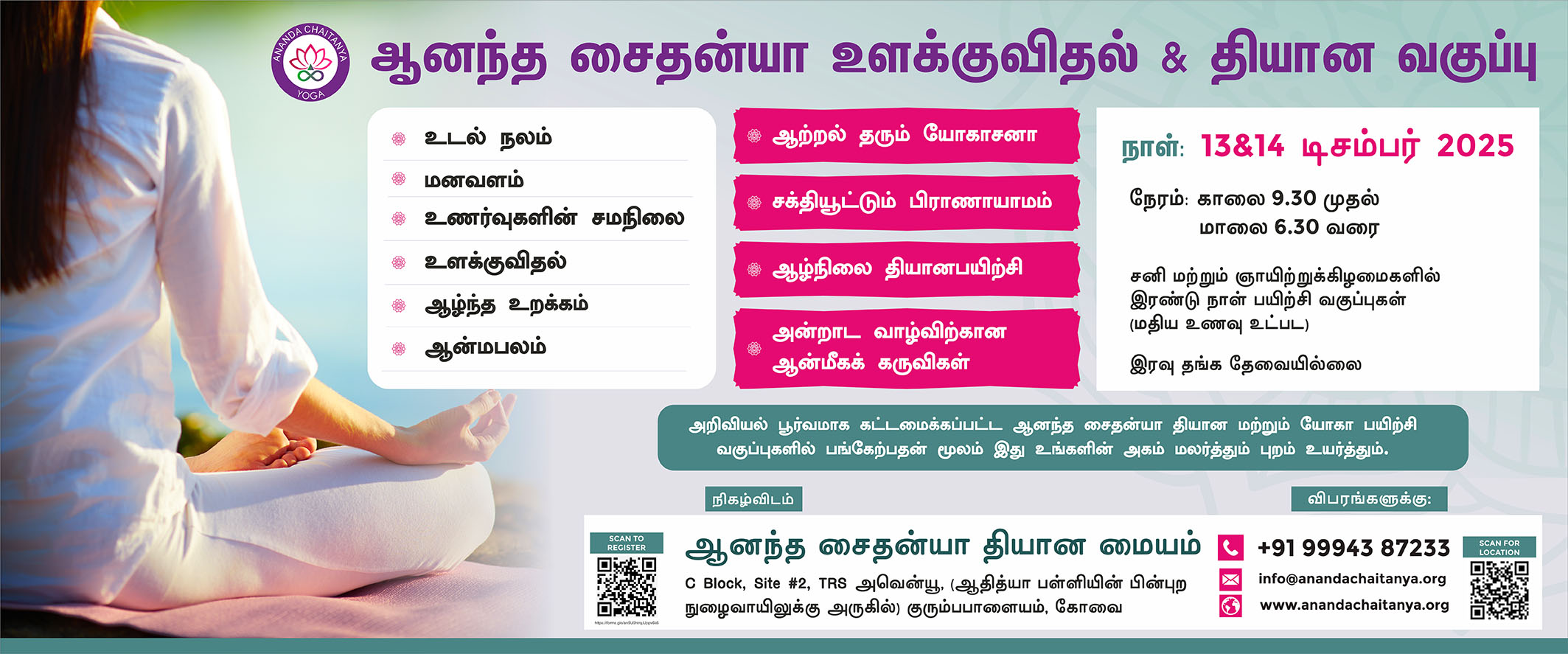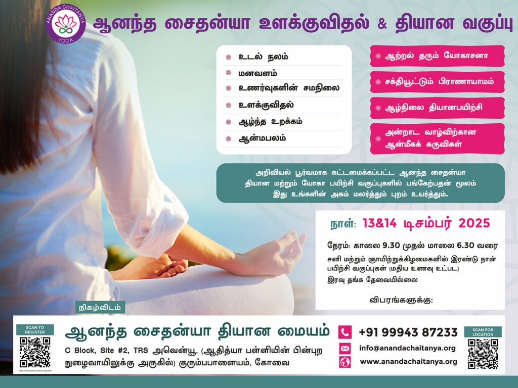 இன்றும், யோகா பயிற்சியனை முறையாக செய்து வருகின்றேன். வாழ்வில் மாற்றமும், ஏற்றமும் வேண்டுமென்போருக்கு, ஆனந்த சைதன்யா அறக்கட்டளை அருமையான வழிகாட்டி!