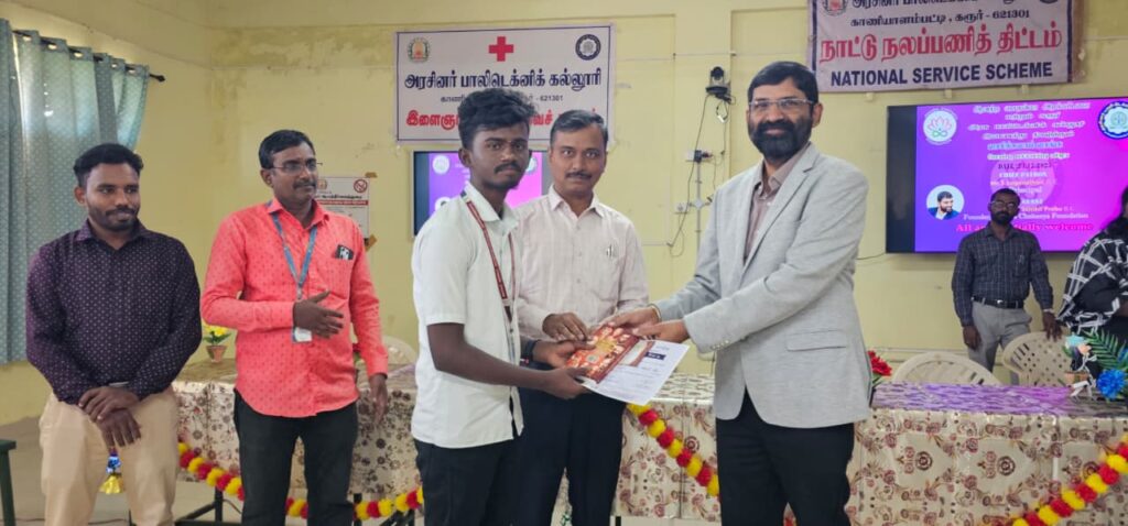 அதனை தொடர்ந்து கரூர் அரசு பாலிடெக்னிக் கல்லூரியுடன் இணைந்து ஆனந்த சைதன்யா அறக்கட்டளை சார்பில் அங்கு புத்தக வாசிப்பு போட்டியும் அதனை தொடர்ந்து கடந்த 24 டிசம்பர் 2025 அன்று பரிசளிப்பு விழாவும் கல்லூரியில் நடத்தப்பட்டது.