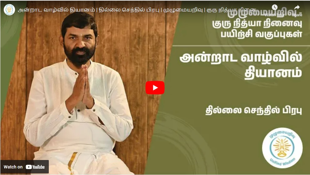 A video talk of Shri.Thillai is released on the benefits of yoga and meditation practices and how to imbibe them in daily life by the Unified Wisdom initiative by Writer Jeyamohan.