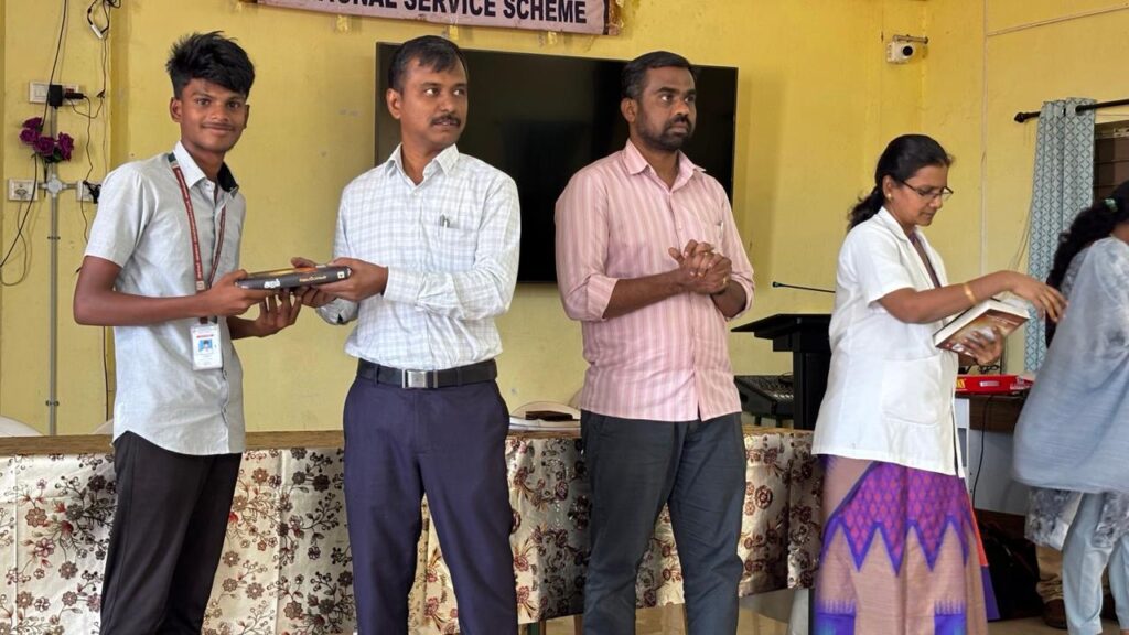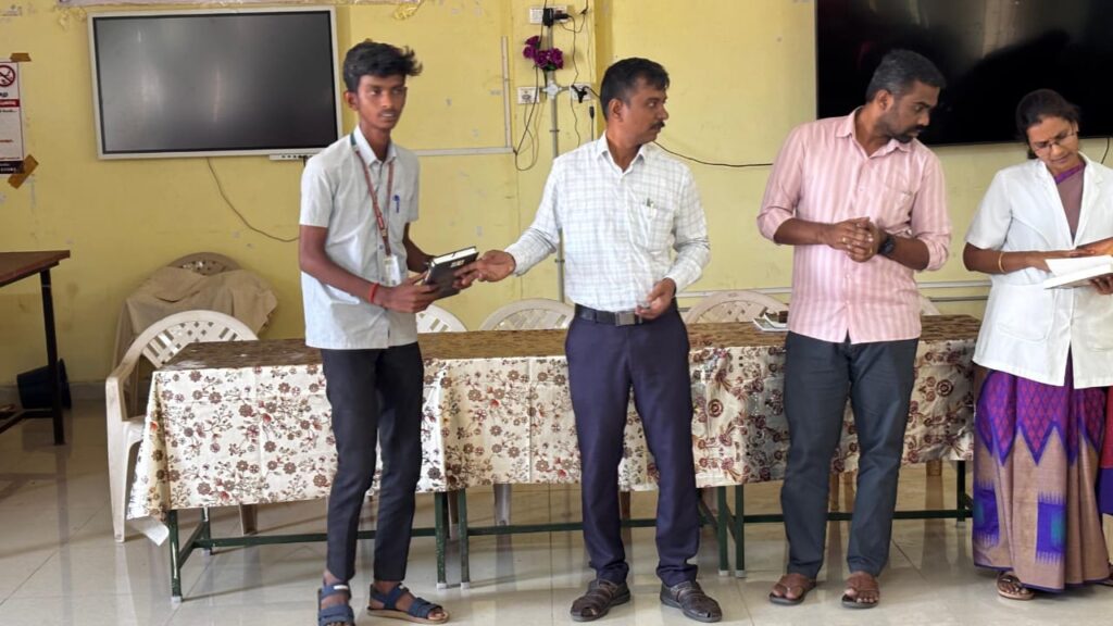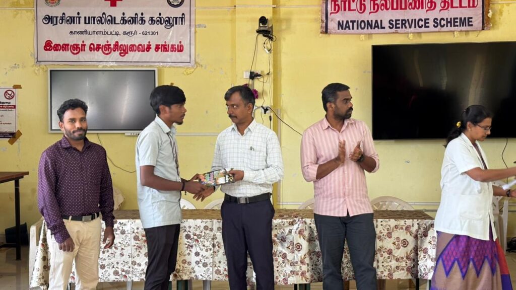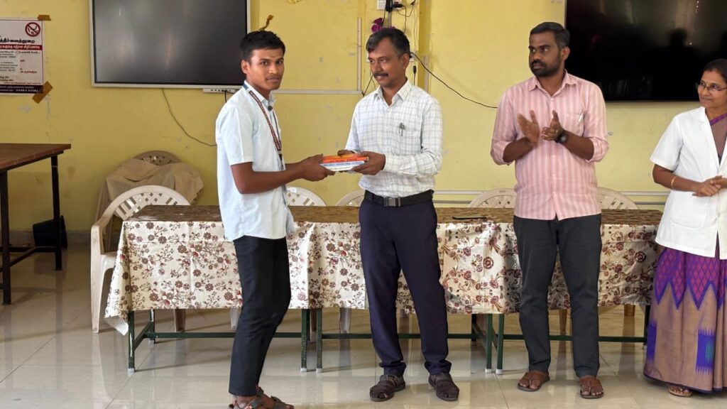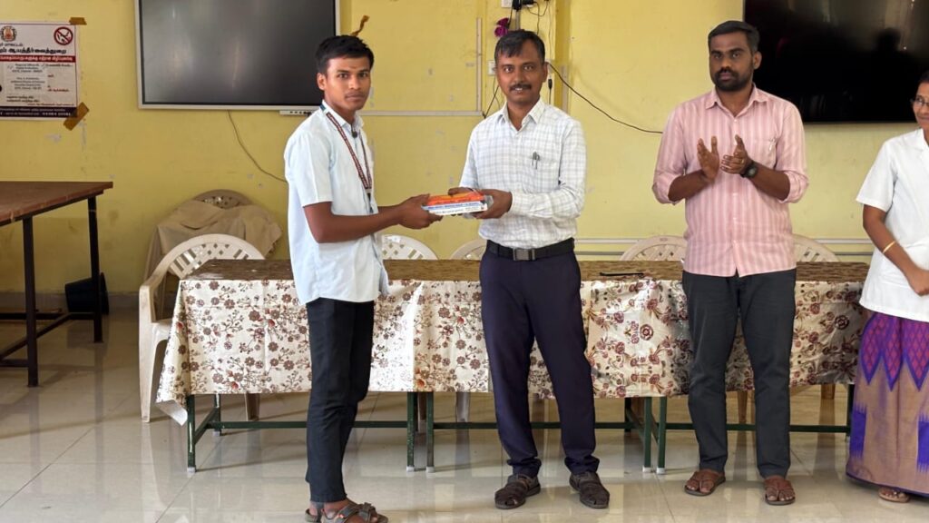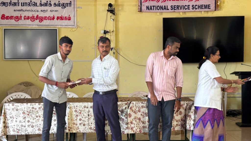 புத்தக வாசிப்பு போட்டியில் கலந்துகொண்டு வெற்றிபெற்ற மாணவர்களுக்கு மாணவர்களுக்கு ஆனந்தசைதன்யா அறக்கட்டளையின் சார்பில் பரிசளிப்பு விழா 5 மார்ச் 2026 அன்று கரூர் அரசு பாலிடெக்னிக் கல்லூரியில் நடைபெற்றது.
